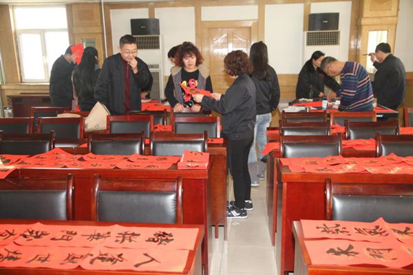 火紅的對聯(lián),淡淡的墨香,一副副工整喜氣的春聯(lián)擺滿了大廳。春聯(lián)內(nèi)容既有喜迎豬年辭舊迎新的美好愿景,也有歌頌黨恩、大展宏圖的勵(lì)志詞句,一幅幅精彩的書法作品,一句句吉祥如意的春聯(lián),不僅讓職工目睹了書法家的風(fēng)采,更為即將來臨的春節(jié)增添了濃濃的喜慶氛圍。機(jī)關(guān)干部職工紛紛前來領(lǐng)取現(xiàn)場寫好的春聯(lián)、更接受“私人訂制”,現(xiàn)場喜氣洋洋、歡聲笑語,不僅送出了新春的祝福更送出了濃厚的年味兒和文化味。